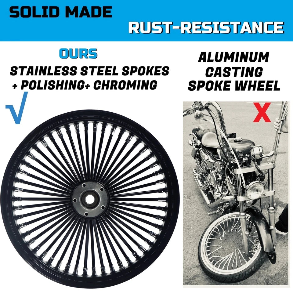 【ANTI-RUST CHROME FINISH】Stainless steel 3/8" spokes and high-polish chrome rims resist rust, ensuring durability for all-weather riding.