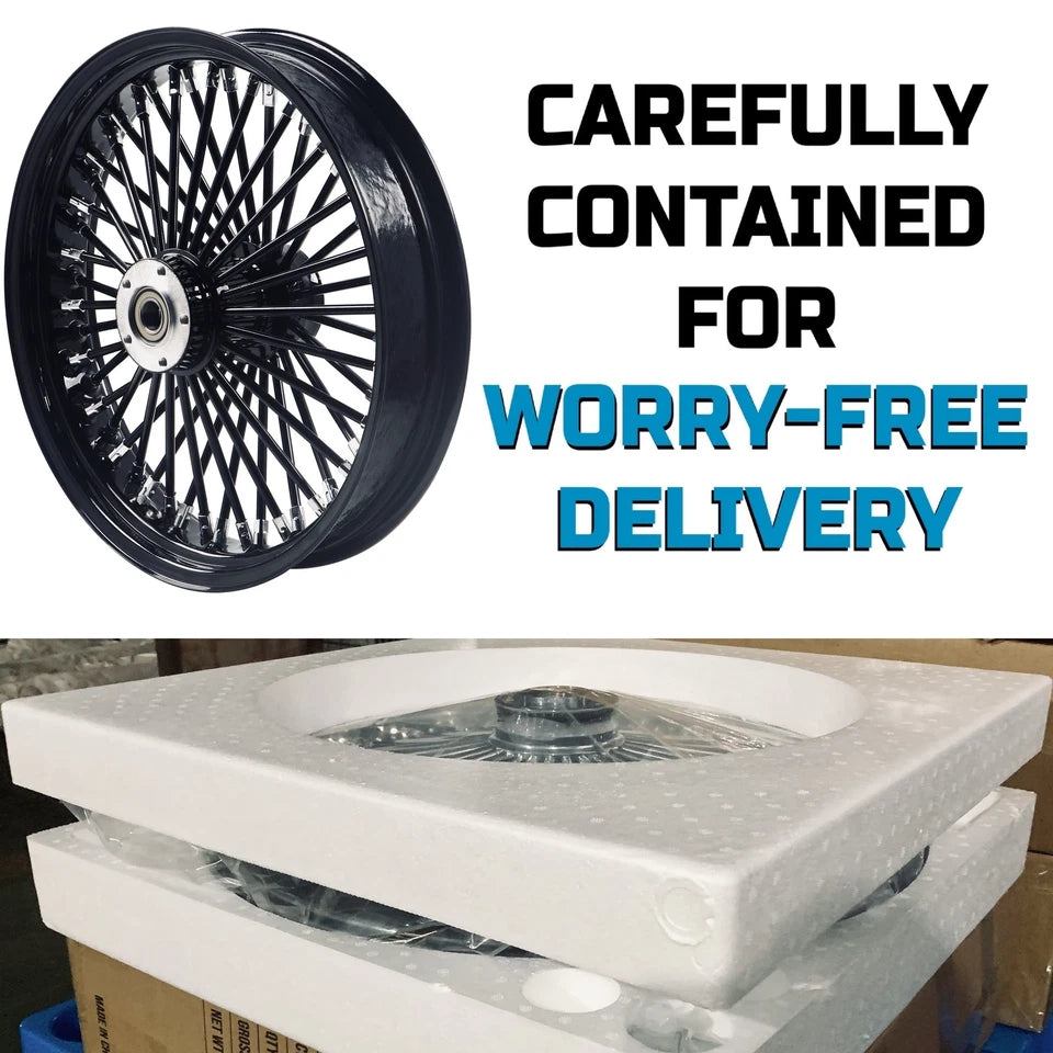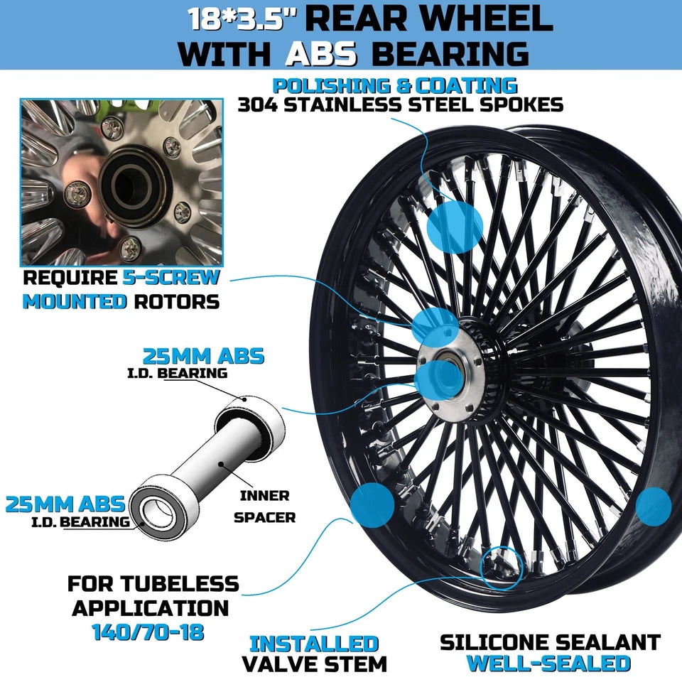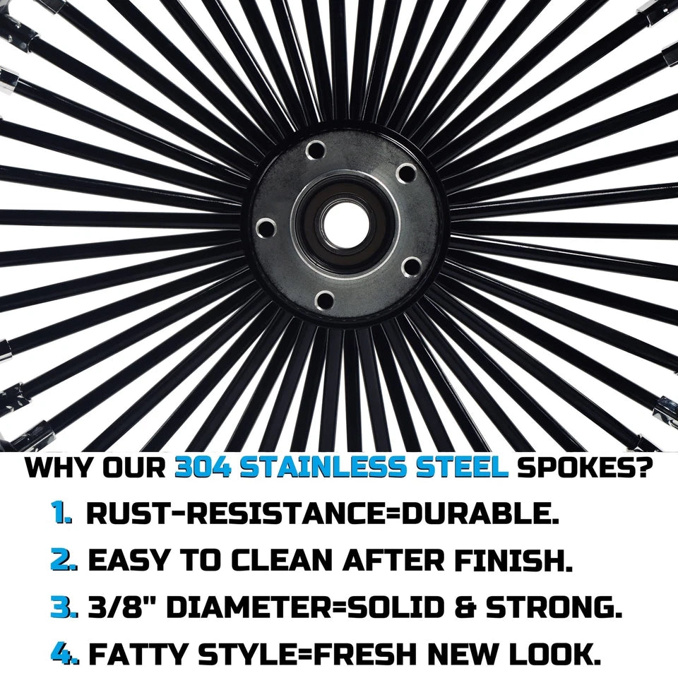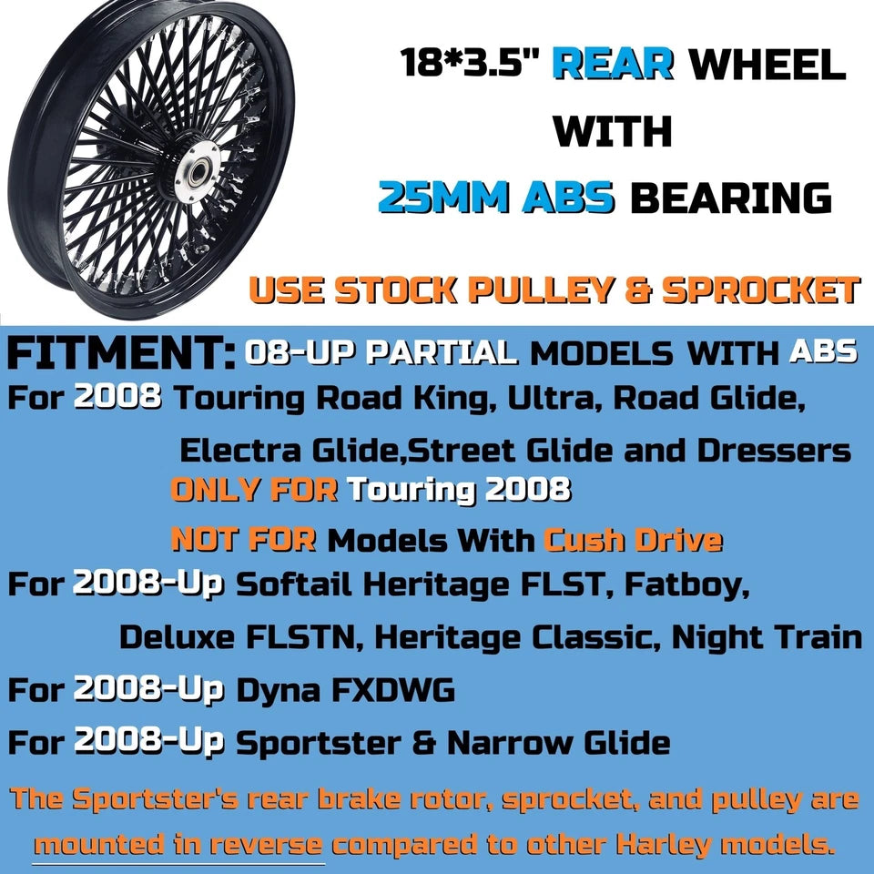 【CLASSIC FAT SPOKE DESIGN】Fat spoke configuration delivers timeless classic aesthetics, perfect for 2008 Touring, and 2008-up Softail, Dyna, Sporster partial models.
