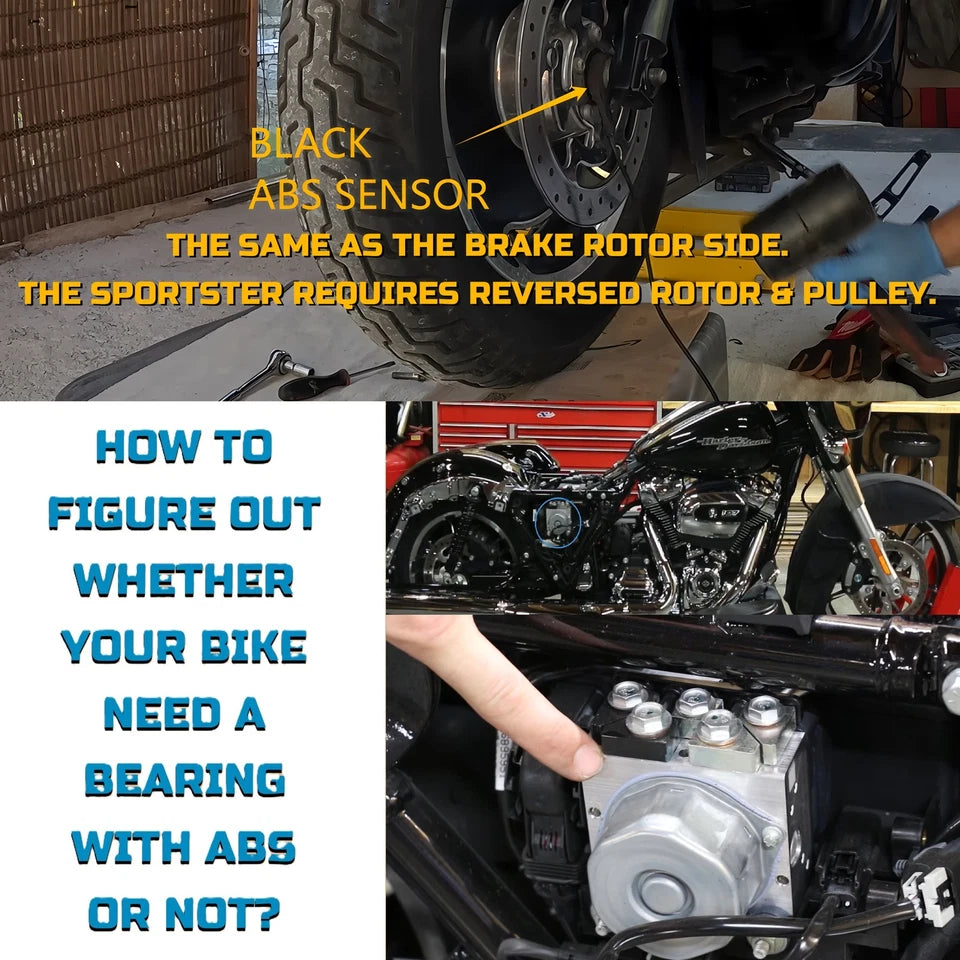 The Sportster's rear brake rotor, pulley, and sprocket are mounted in reverse compared to other Harley models. Please note.