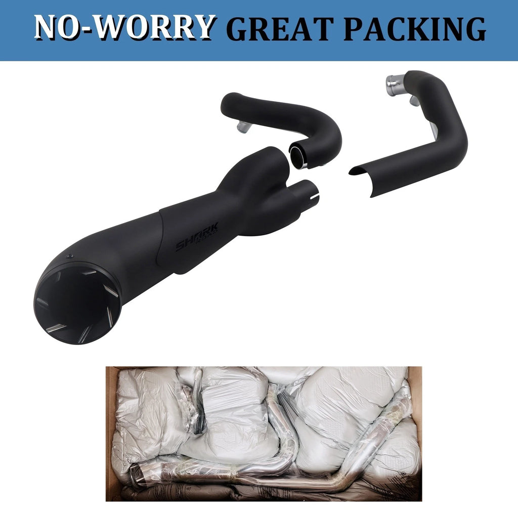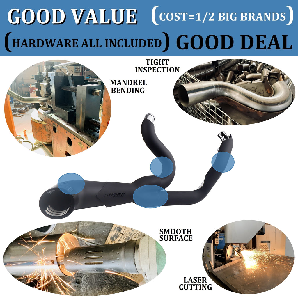 【GOOD VALUE, GREAT DEAL AT A REASONABLE PRICE.】Quality 2 into 1 exhaust for Harley Touring exhaust only cost you 1/2 budget of big brands. Gain more for a better life.