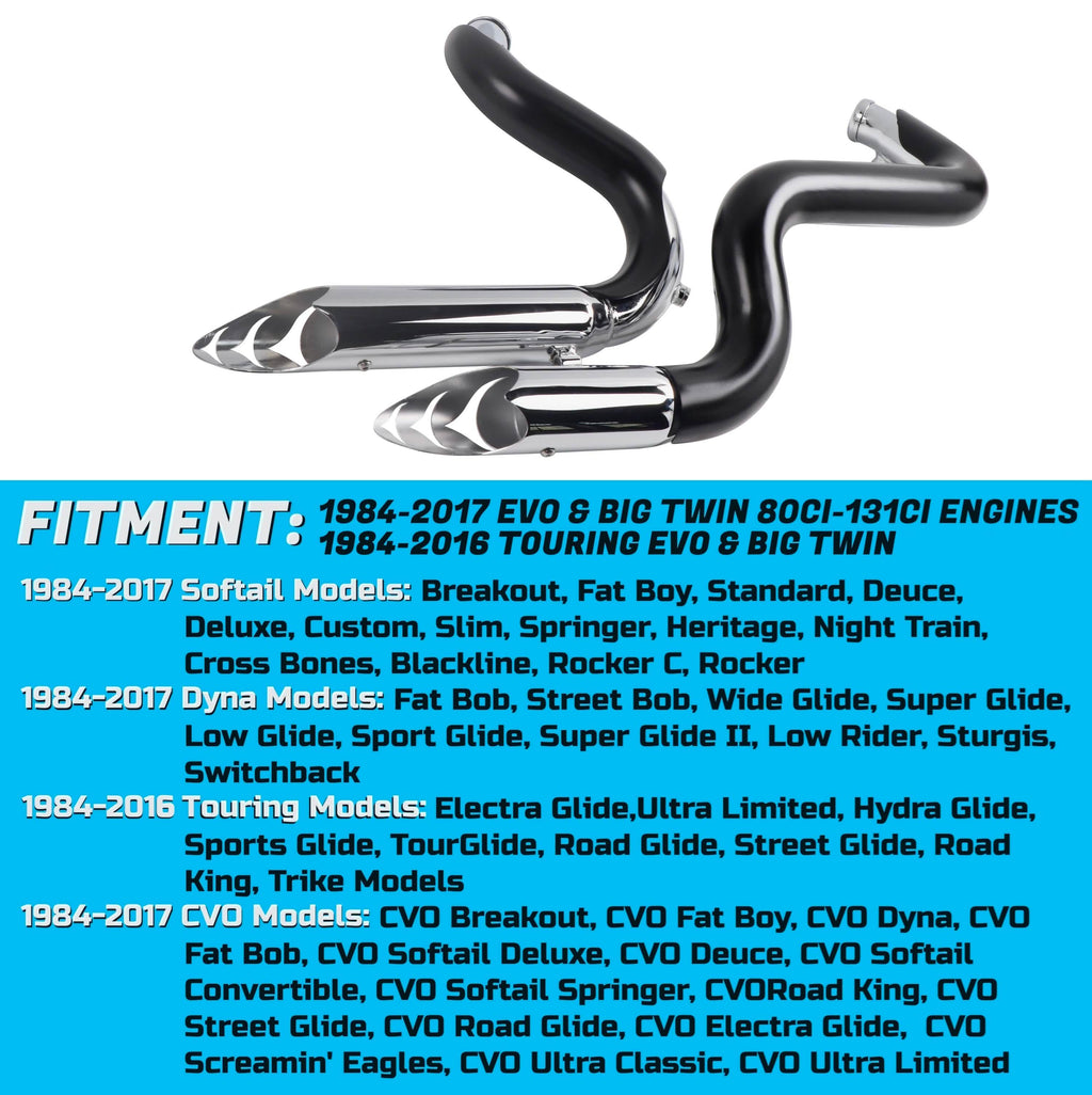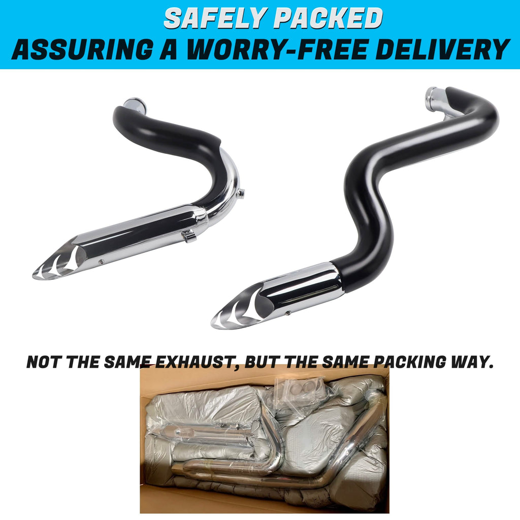 【NO-BRAINER INSTALLATION.】Easy to install with independent slip on exhaust for Harley Davidson Touring, Softail, Sportster, and Dyna models.