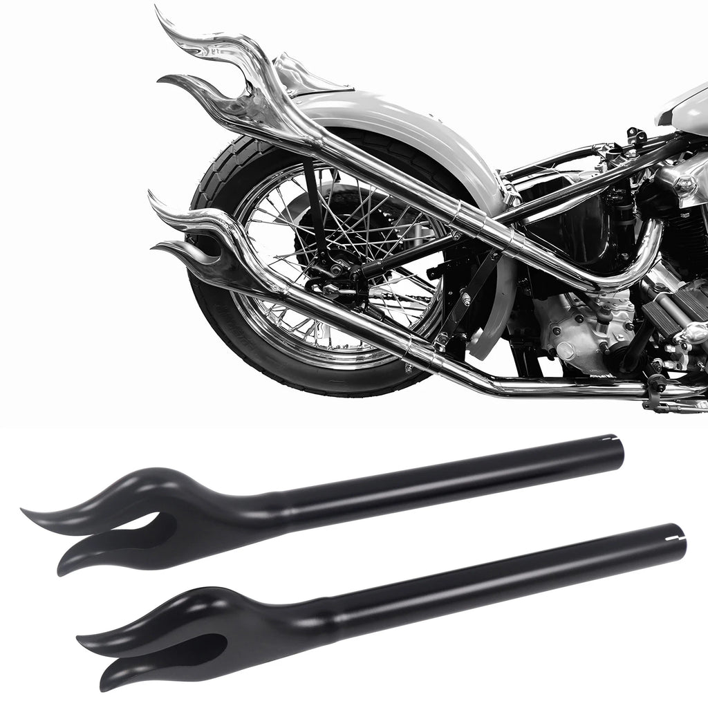 Chrome/BLACK straight pipe sets fits over 1-3/4″ headers and measures 30″ long.